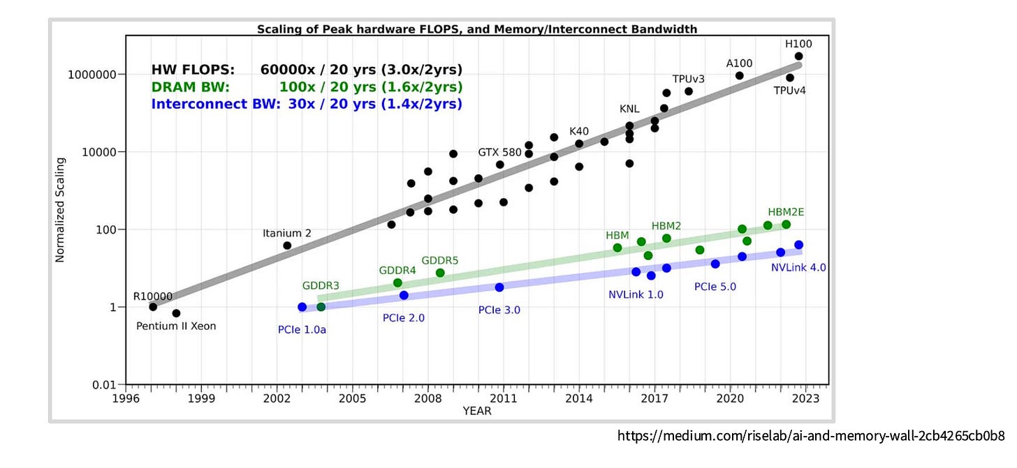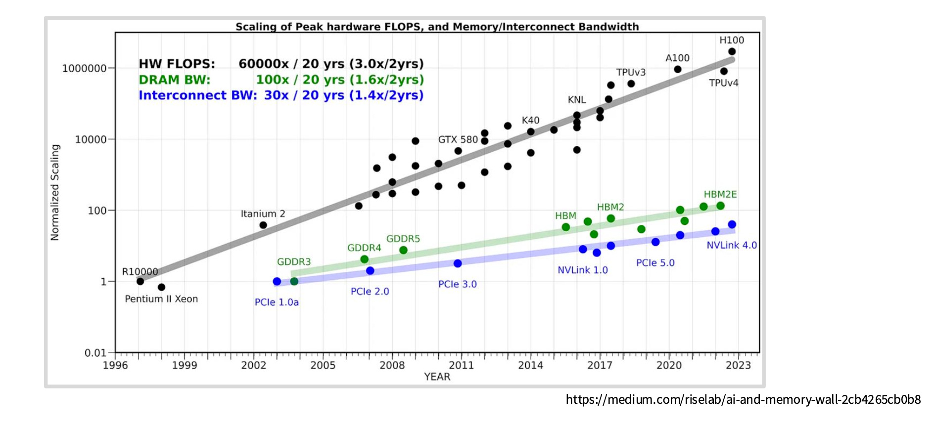 The core problem: compute capability (number of floating point operations per second) has been scaling much faster than memory bandwidth. This growing gap means memory increasingly becomes the bottleneck, even as our GPUs get more powerful.