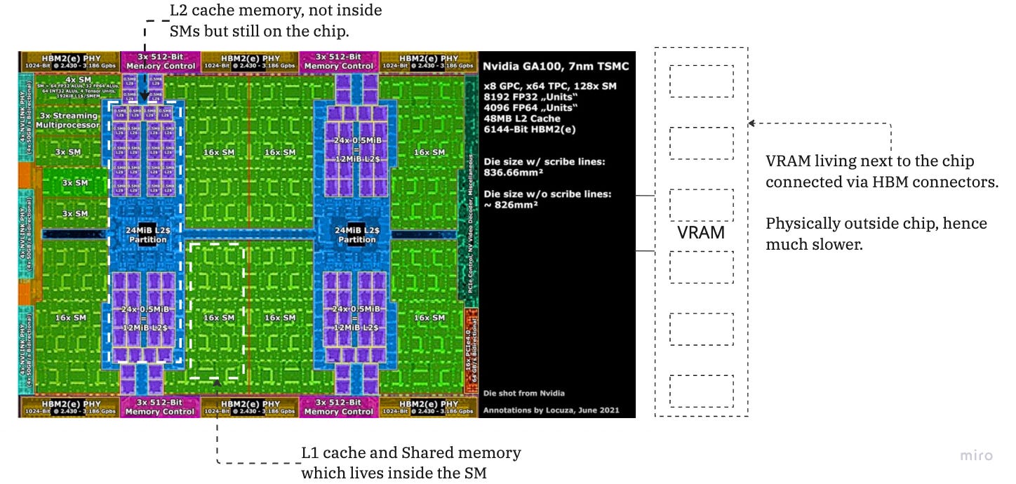 Having a rough understanding of the physical structure of the GPU helps in this case. When operating at such fast speeds, physical proximity to where the computation happens becomes more important than we expect.