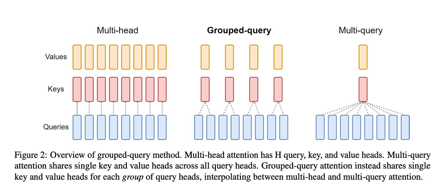 In other words, with a reasonable number of groups, accuracy drop is minimal – “nearly as accurate as MHA while being nearly as fast as MQA.” This makes it an attractive compromise.